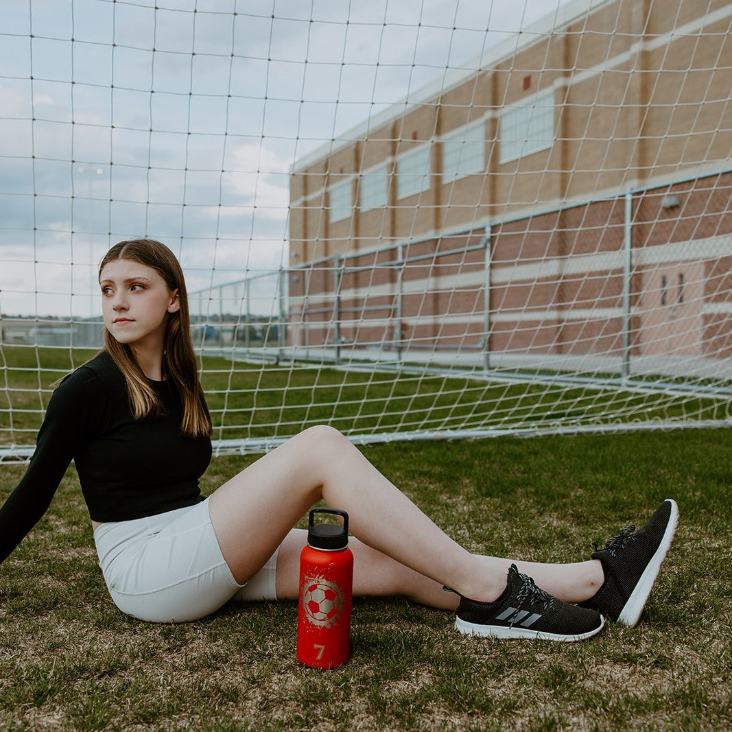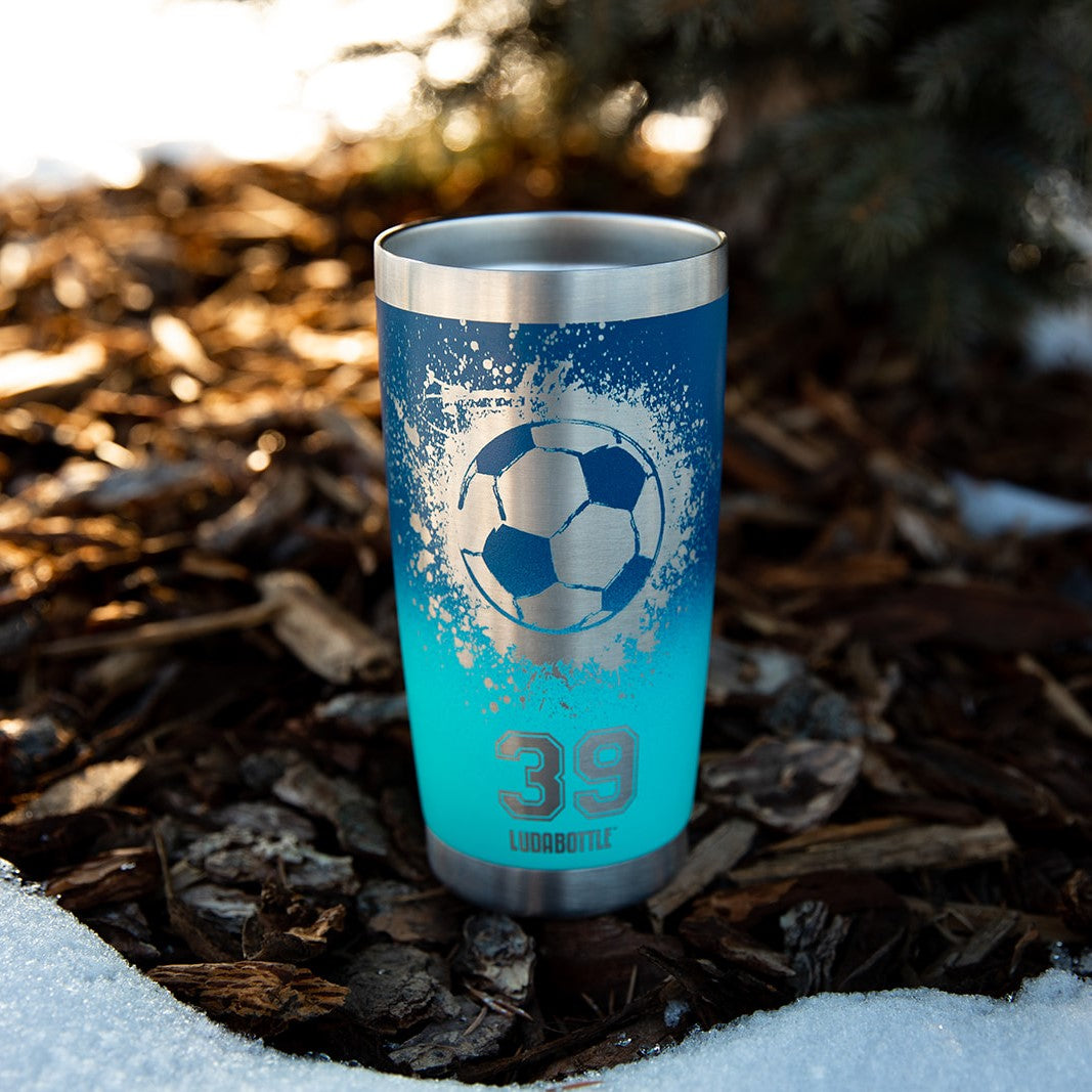 This 20oz stainless steel water bottle features a unique soccer ball design and customizable options, making it the perfect accessory for any soccer fan. Stay hydrated in style and show off your love for the sport with this sleek and durable bottle.